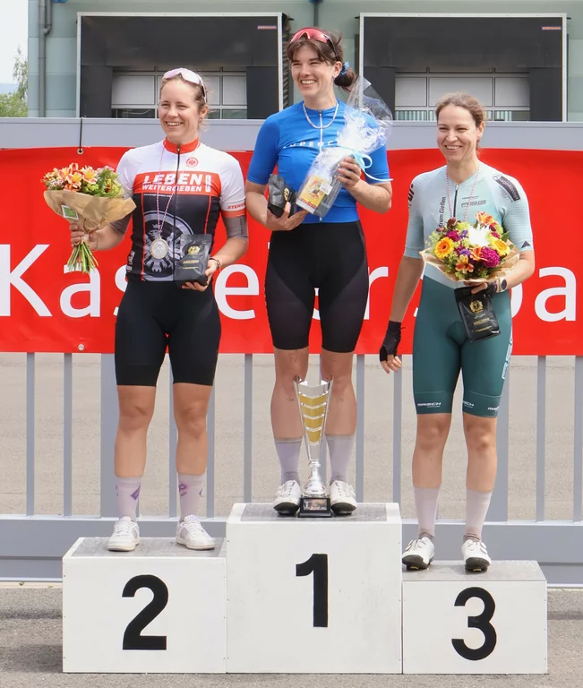 15. Juni 2025. – Elena Holl hat sich in Immenhausen bei Kassel den Titel der Hessischen Kriteriumsmeisterin gesichert. Die Rennfahrerin der RSG Frankfurt, die für das Team Superciao Women startet, zeigte sich vom Start an erneut sehr motiviert und konnte fleißig Punkte sammeln. Dennoch war der Titel bis zur doppelt zählenden Schlusswertung noch nicht vollständig abgesichert. Um sich nicht auf den Endspurt zu verlassen, wagte Elena Holl dann eine Runde vor Schluss die entscheidende Attacke. Ihrem starken Antritt konnte keine Fahrerin folgen, so dass die 10 Punkte auf das Konto der Frankfurterin gingen. Der verdiente Lohn war der erstmals ausgefahrene Titel in der Disziplin Kriterium.