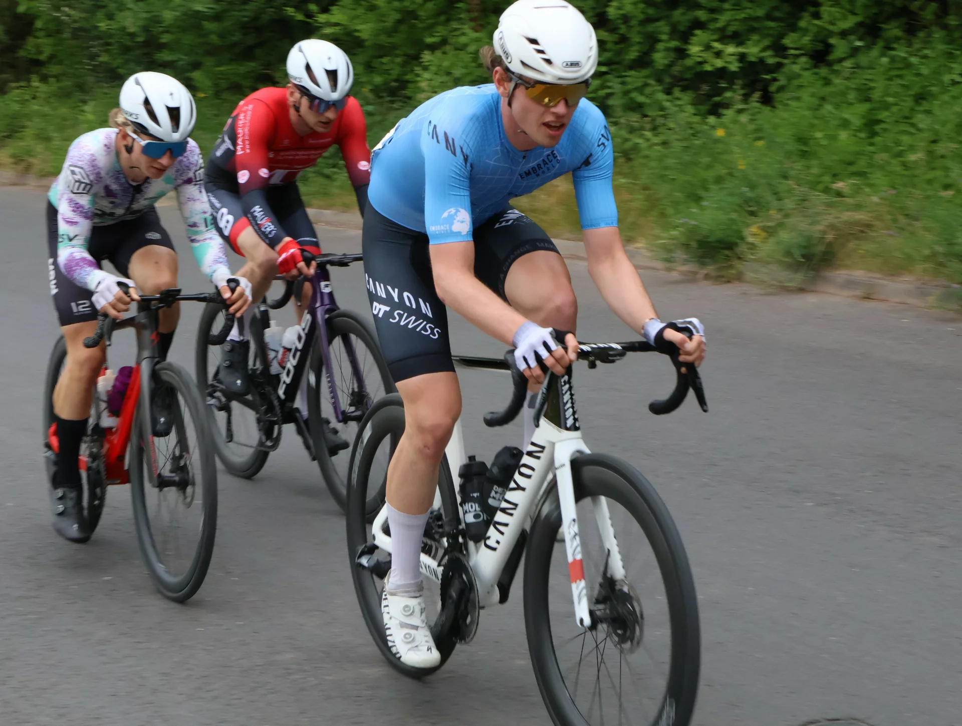 In den Nachwuchsklassen war auch Frida Heim in aussichtsreicher Position unterwegs, als ein Sturz ihre Ambitionen ausbremste. Zum Glück waren die Verletzungen zwar schmerzhaft, aber nicht gravierend. Eine Aufholjagd nach holprigem Start zeigte Raphael Andres in der U11. Auf nasser Fahrbahn konnte er zahlreiche Plätze gut machen und kam schließlich als Siebter ins Ziel. Niklas Weckel belegte ebenfalls Platz 7 in der U13. Eine weitere gute Platzierung holte Moritz Dossche in der U17 mit Rang 10, Alexandru Bischoff wurde 14. In der U19 erreichten Konrad Schöffberger und Bjarne Heim die Plätze 8 und 11. Im stark besetzten Rennen der Elite kamen Philipp Freyer, Jadon Siebert und Nikolai Gessner auf den Plätzen 17, 25 und 27 ins Ziel.