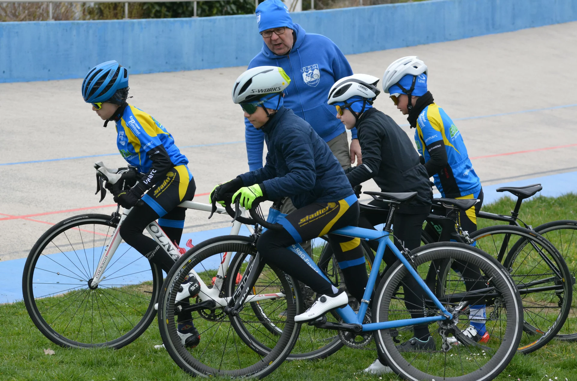 30. März 2025. – Trotz kühler Temperaturen und einem frischen Wind trafen sich zahlreiche Aktive der RSG Frankfurt am Sonntag, 30. März, zur gemeinsamen Vorbereitung auf die Bahn-Saison. Erfahrene Sportlerinnen und Sportler sowie „Erstlinge“ waren rund zweieinhalb Stunden auf dem Oval unterwegs, um sich auf Sommerbahntraining, Landesmeisterschaften und auch Sichtungsrennen vorzubereiten. Nach der üblichen theoretischen Einführung folgten die Eingewöhnung sowie mehrere Trainingswettbewerbe unter Aufsicht der Betreuer Jörg Scheuermann, John Mewes, Andreas Broggini und Oliver Muthig. Bei widrigen Bedingungen standen Ausscheidungsfahren, Scratch und ein kurzes Zeitfahren auf dem Plan. Dabei entwickelten sich zum Teil spannende Zweikämpfe und motivierte Verfolgungsjagden, wie sie den Bahnsport auszeichnen. Insgesamt zeigten alle Teilnehmenden guten Einsatz und die nötige Rücksicht, so dass die Einheiten unfallfrei absolviert werden konnten.